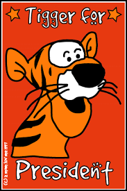 ReplyDeleteMeep! Meep! Tigger should be president definitely! (Or even better - King!) Yay, yay! Go Tigger!